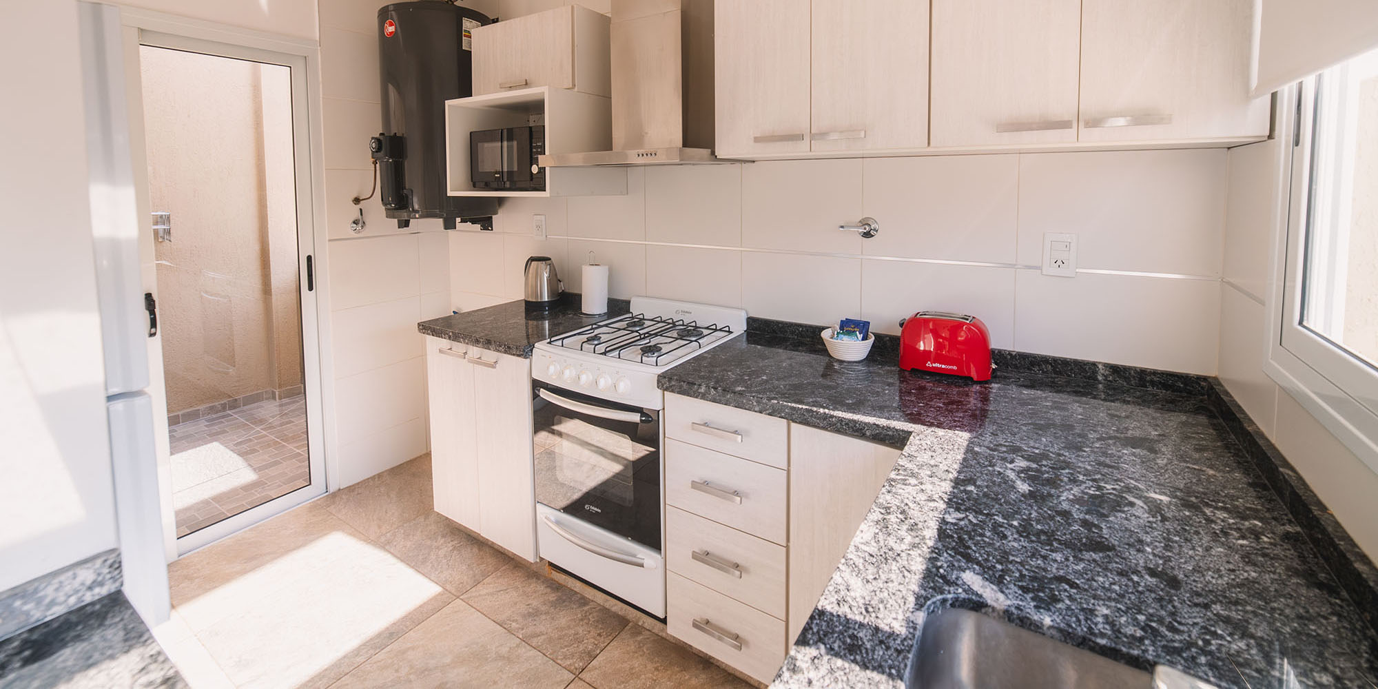 Cocina totalmente equipada, te ofrece todo lo que necesitás para crear deliciosas comidas con facilidad y comodidad. Vajilla completa, heladera con freezer y elementos de limpieza.