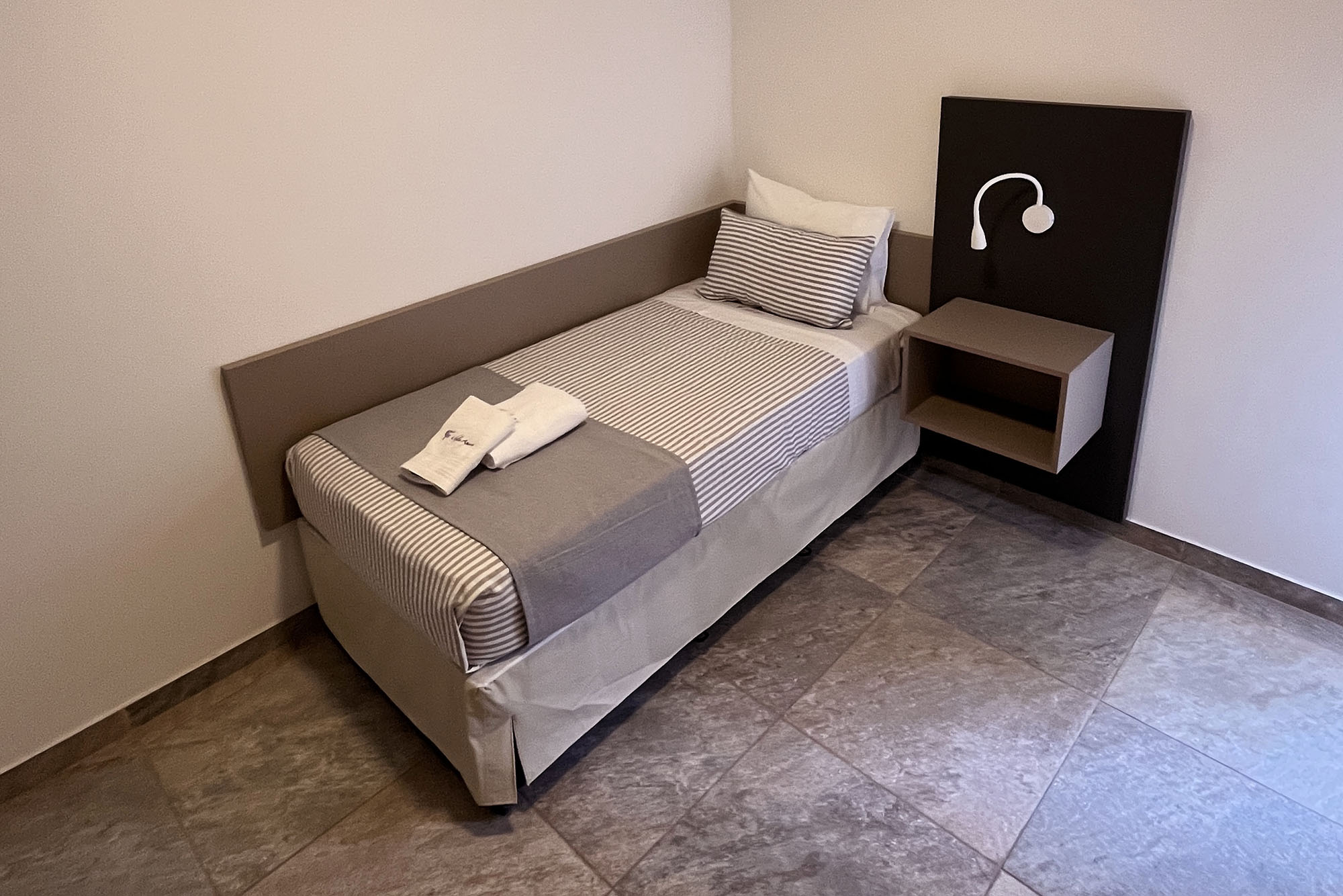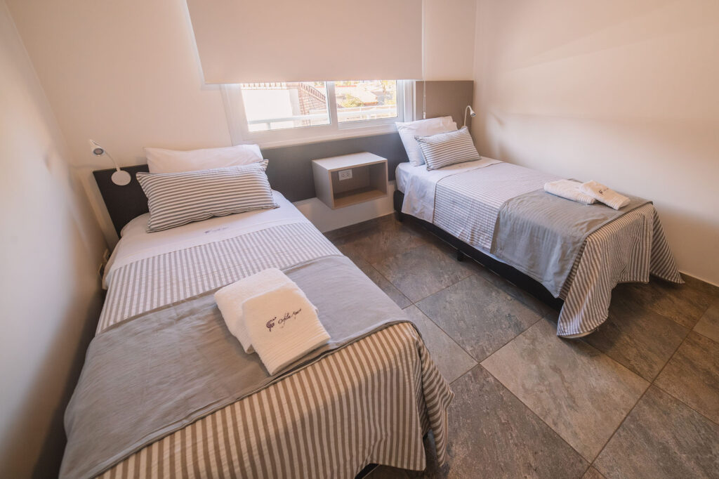 La menor de la familia, habitación simple del D4, posee una cama simple, aire acondicionado, su propio placard y vista al patio interno.