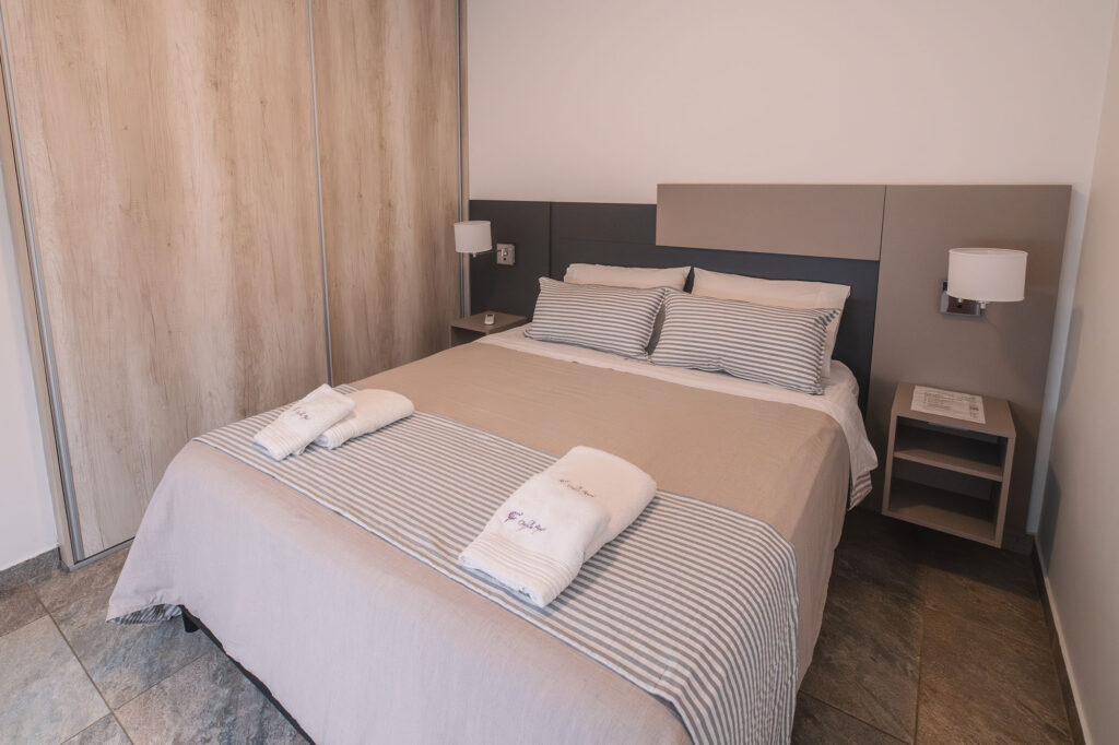 Cuenta con amplio y cómodo somier, equipado con ropa de cama blanca, plumón y mantas de polar. Tiene aire acondicionado, caja de seguridad y patio privado.